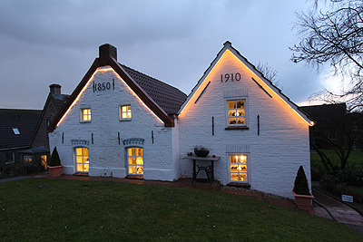 Das "Huus an't Diek " in Greetsiel ist ein ganz besonderes Haus. Es gehört zu den ältesten Häusern von Greetsiel. Das linke Haus soll nach Erkenntnissen der Denkmalbehörde 1850 gebaut worden sein, das rechte im Jahre 1910.